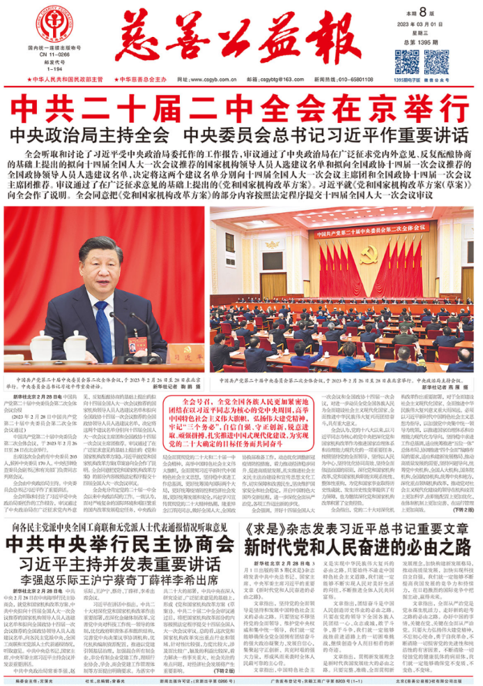 《慈善公益报》1395期2023年3月1日1版