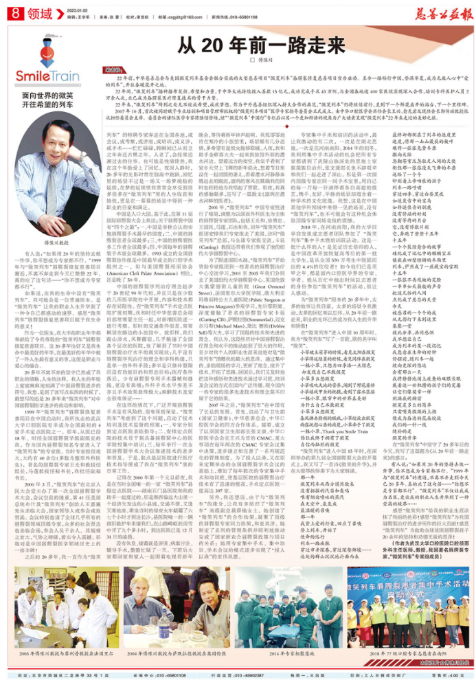 “微笑列车”唇腭裂修复慈善项目是美国微笑列车基金会与中华慈善总会于1999年初开始合作的一个传统项目。经过20多年的发展,“微笑列车”已经成为中华慈善总会与国际慈善组织开展合作的代表性品牌,是慈善领域国际合作具有重要意义的里程碑,为我国唇腭裂诊断和治疗水平的提高发挥了重要助推作用,为促进慈善领域国际合作树立了成功典范。《慈善公益报》对其进行了系列报道,项目的国际影响力明显提升,社会效益明显提高。